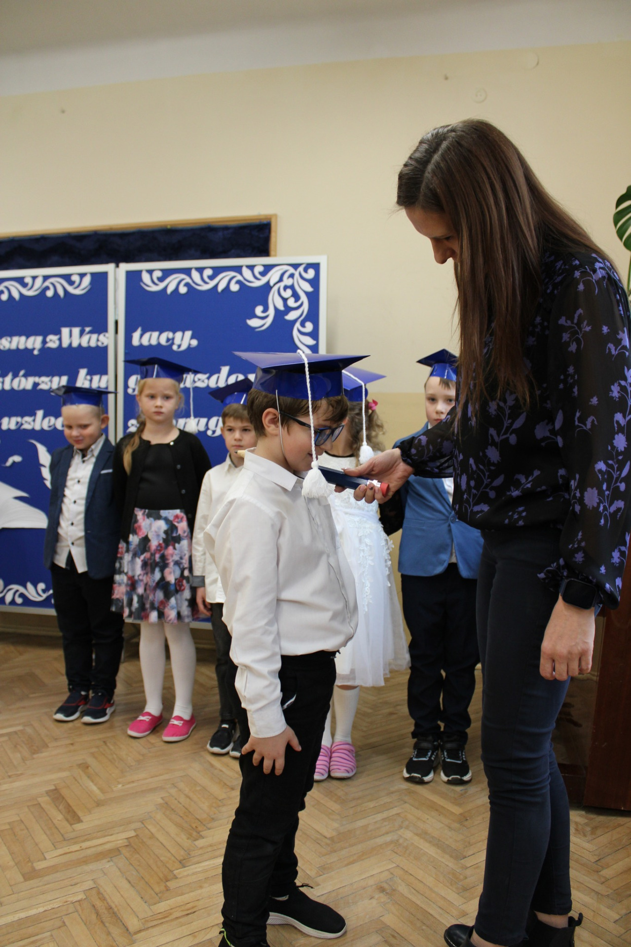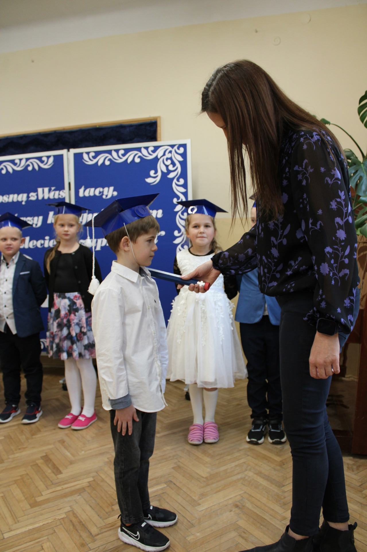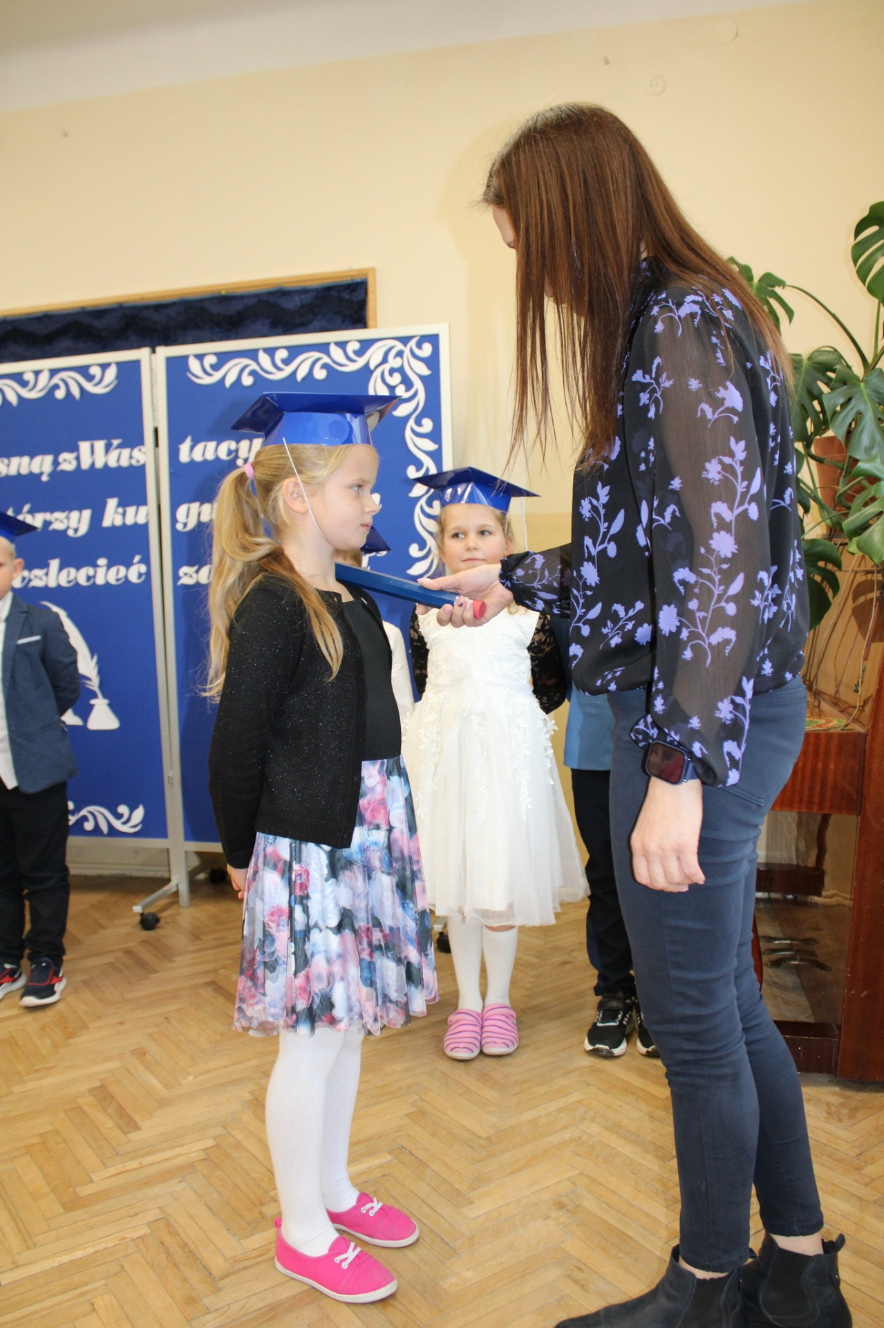To ważne wydarzenie w życiu każdego pierwszoklasisty poprzedził długi okres przygotowań, aby w tym szczególnym dniu wypaść jak najlepiej i pomyślnie zdać „egzamin na ucznia”. Uczniowie zostali sprawdzeni przez uczennice klasy czwartej i wszystkie zadania wykonali śpiewająco.