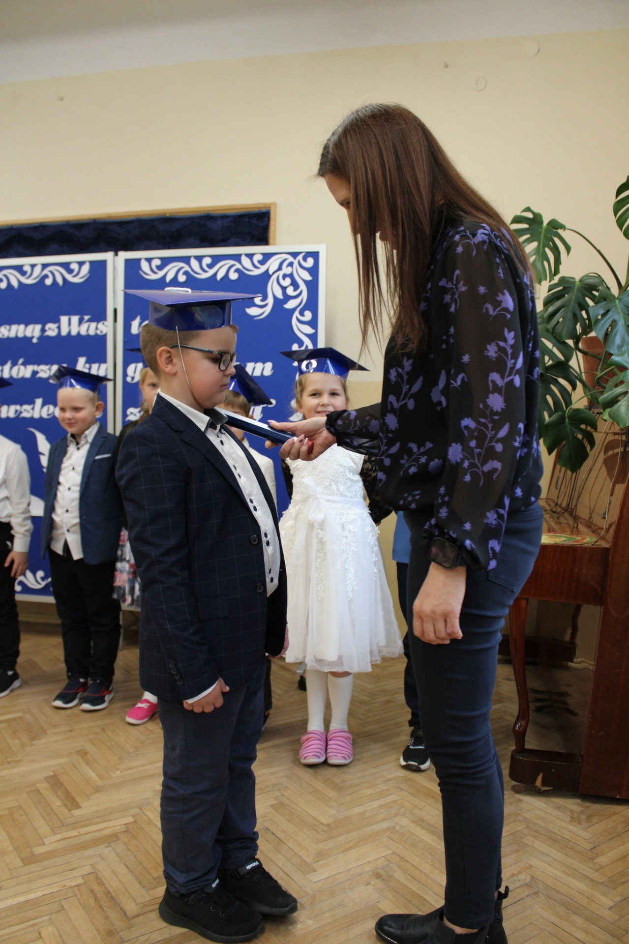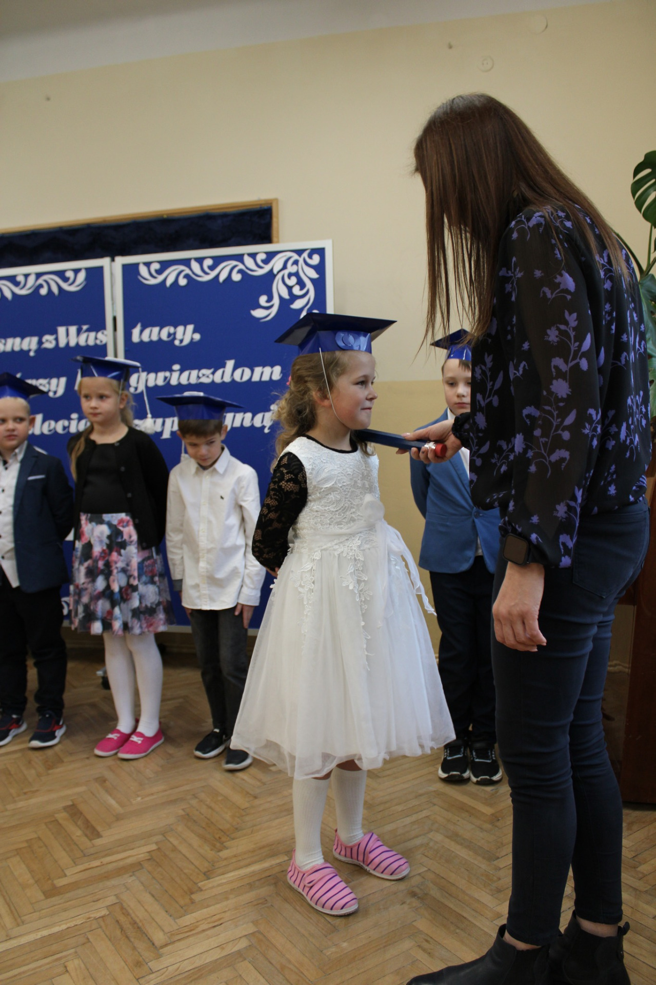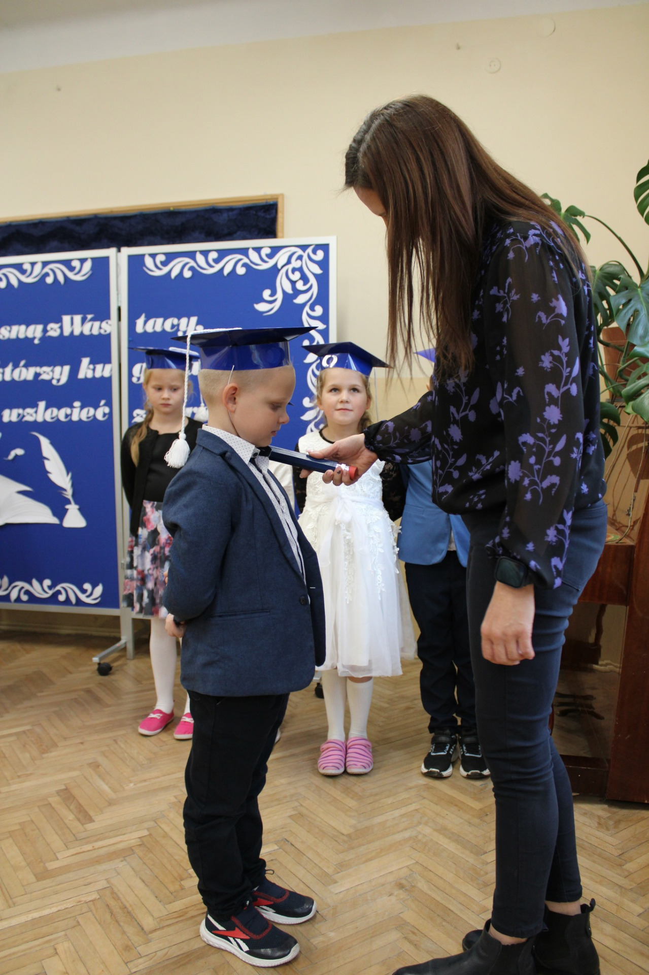 To ważne wydarzenie w życiu każdego pierwszoklasisty poprzedził długi okres przygotowań, aby w tym szczególnym dniu wypaść jak najlepiej i pomyślnie zdać „egzamin na ucznia”. Uczniowie zostali sprawdzeni przez uczennice klasy czwartej i wszystkie zadania wykonali śpiewająco.