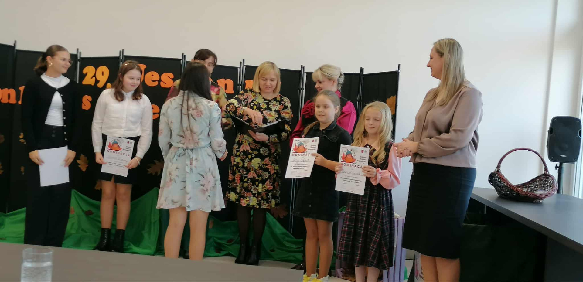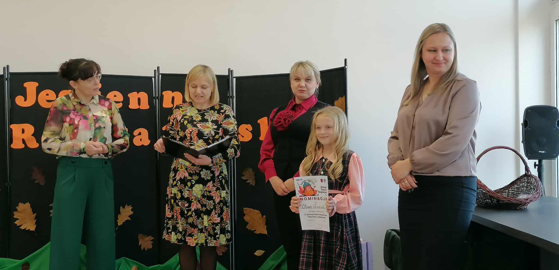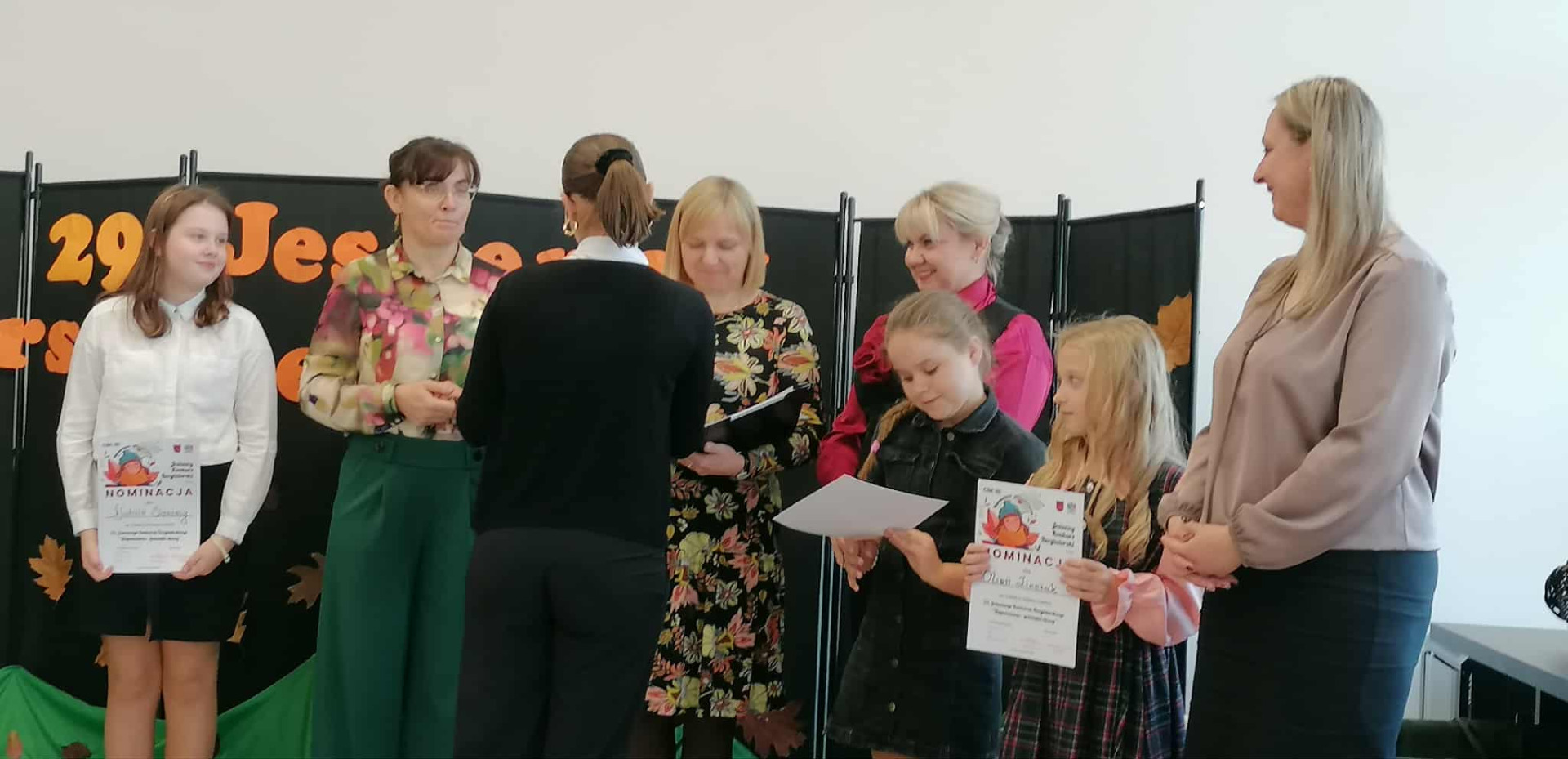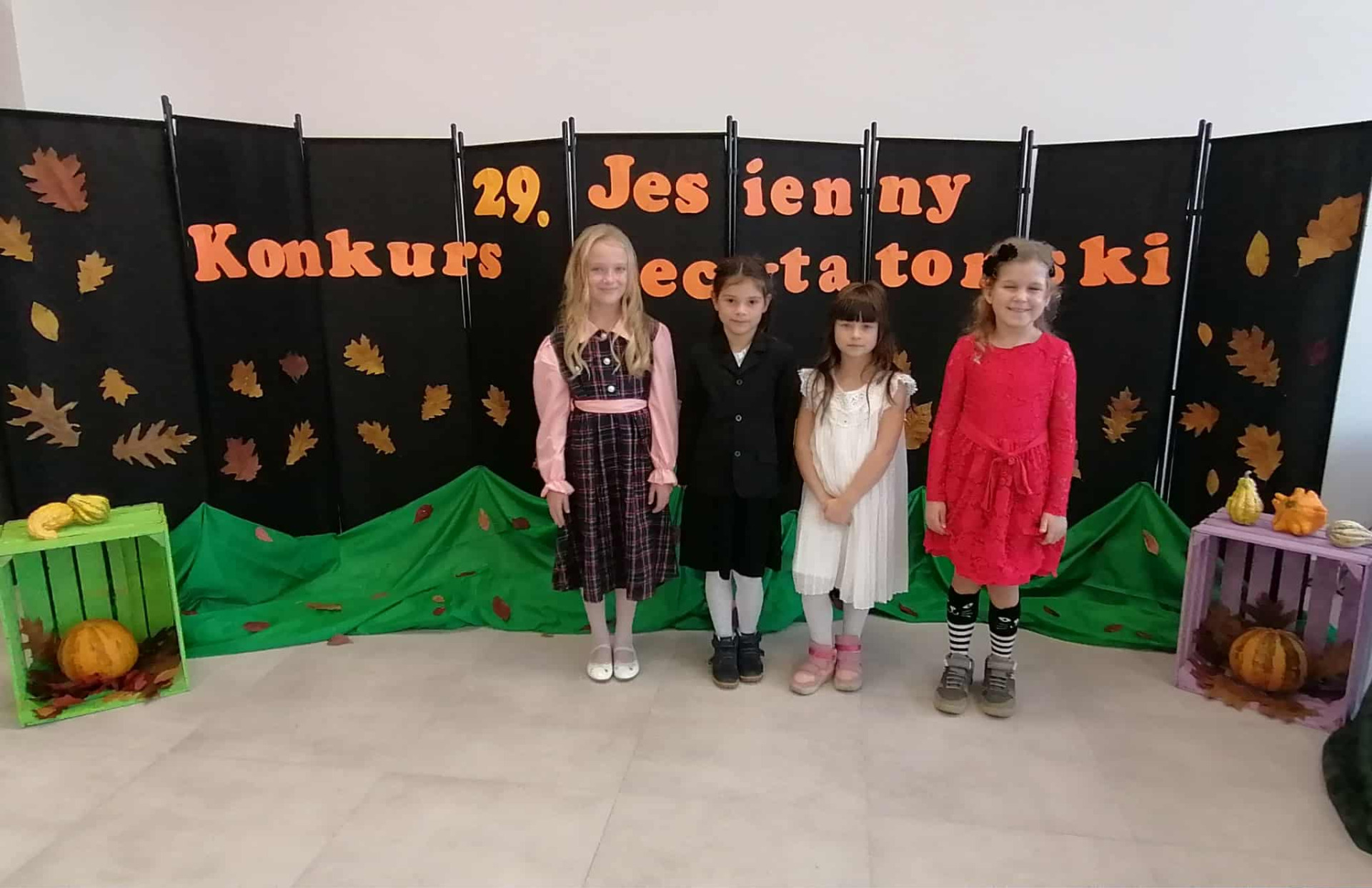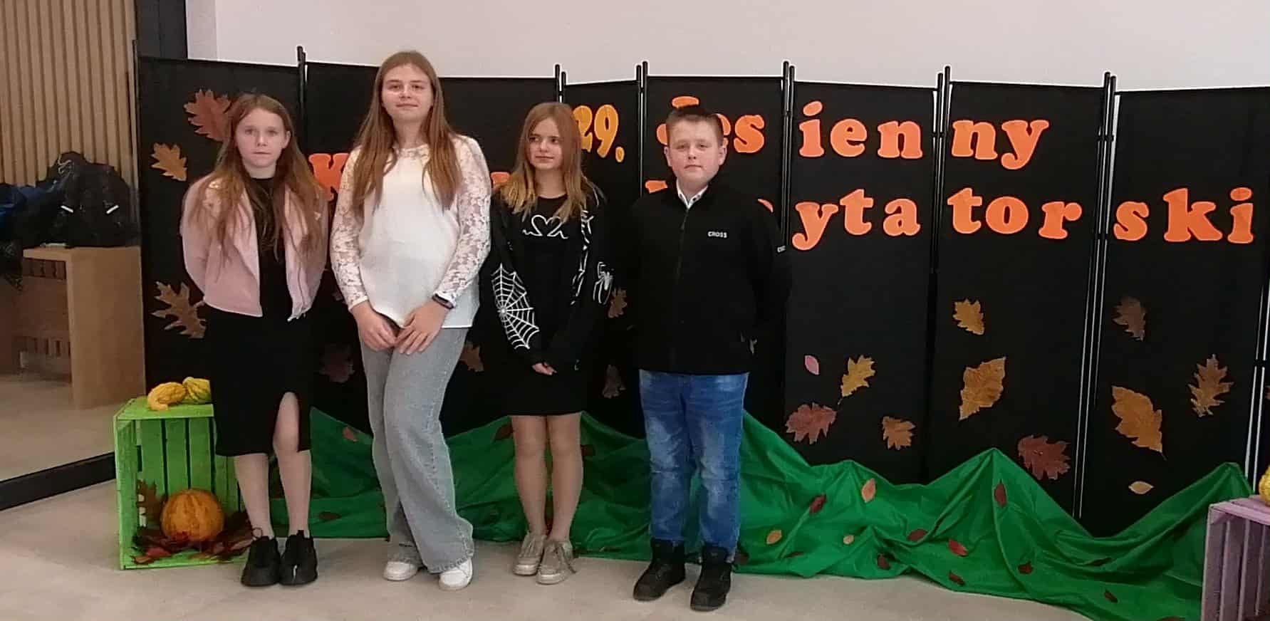 4 listopada 16 uczniów naszej szkoły wzięło udział w eliminacjach gminnych Jesiennego Konkursu Recytatorskiego. Tematem przewodnim konkursu były "Wspomnienia- pamiątki duszy". Nominacje do następnego etapu otrzymały: Oliwia Zieniuk kl. III, Alicja Kociuk klasa IV, Vanessa Świątek kl. VIII i Dorota Skrzyńska kl. VIII. Gratulujemy i życzymy sukcesów w następnym etapie.
