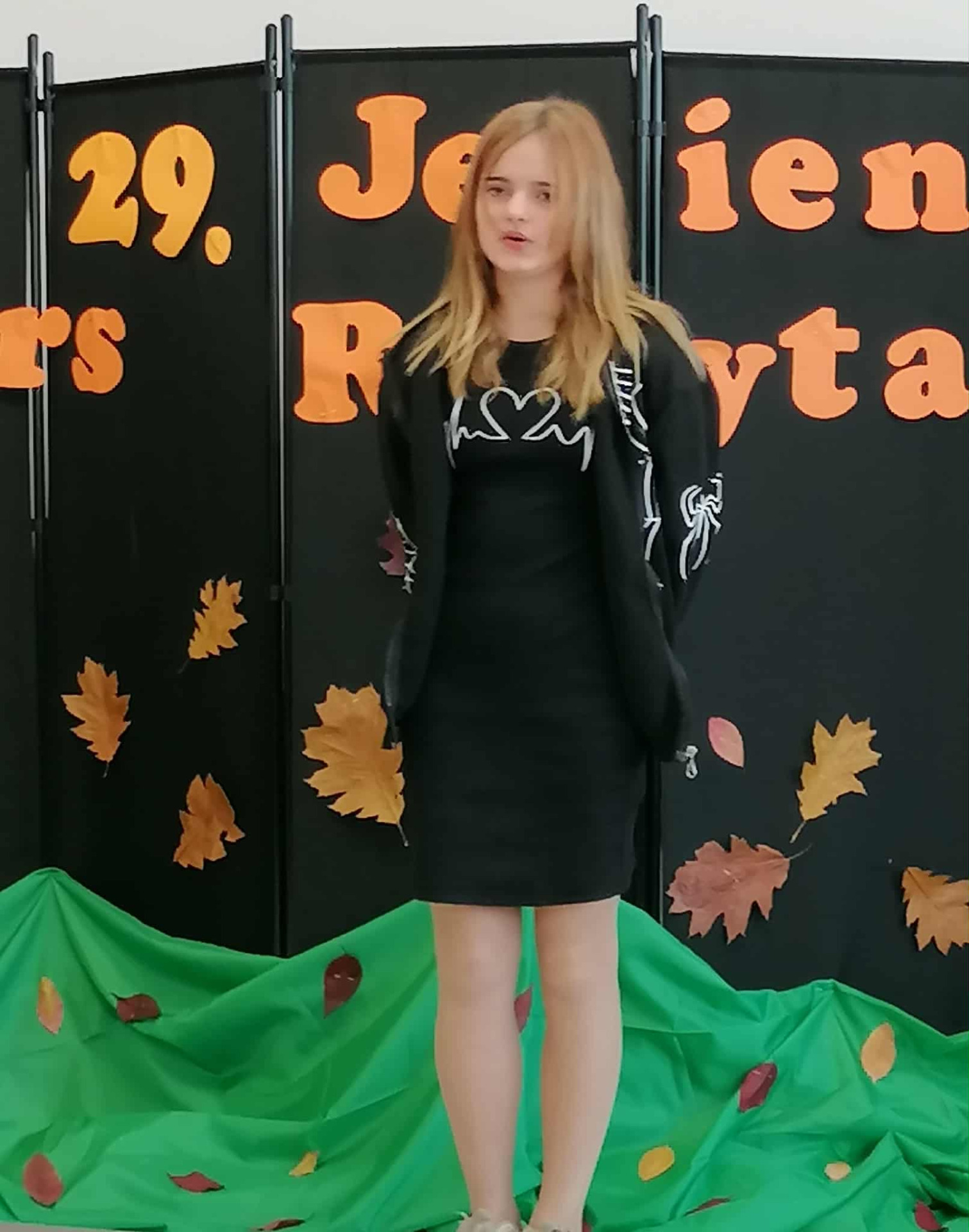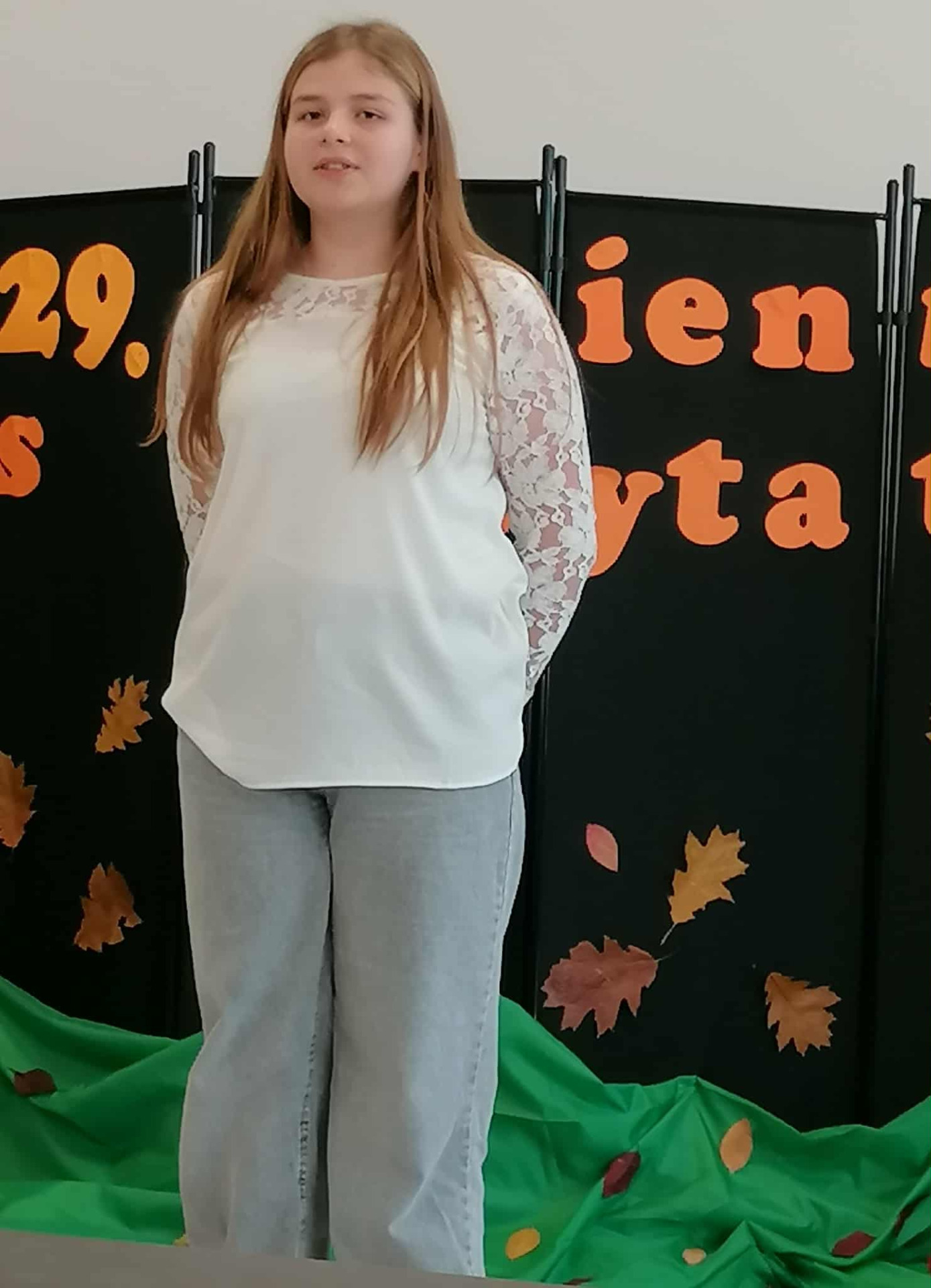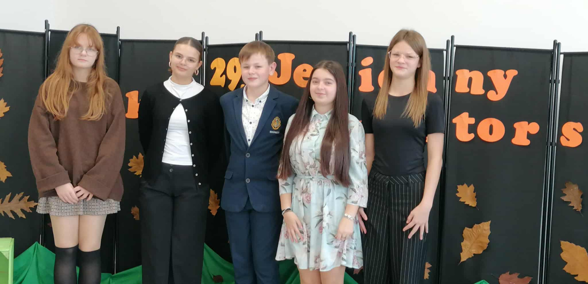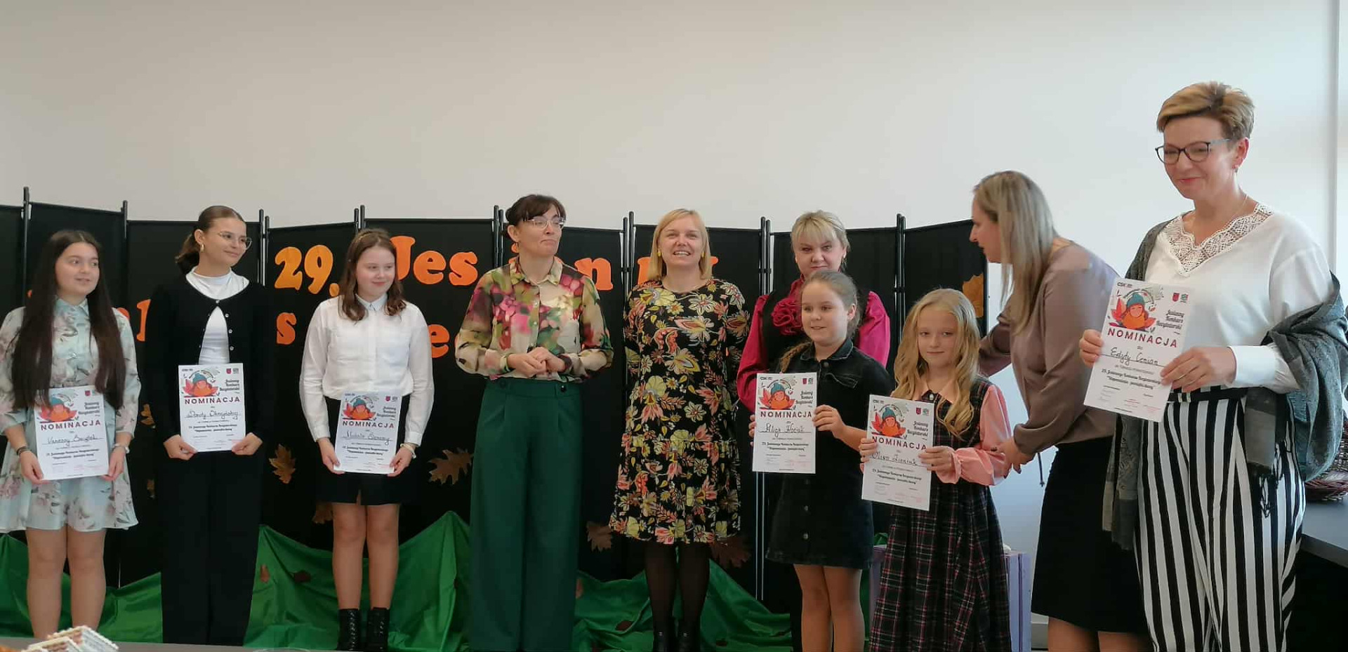 4 listopada 16 uczniów naszej szkoły wzięło udział w eliminacjach gminnych Jesiennego Konkursu Recytatorskiego. Tematem przewodnim konkursu były "Wspomnienia- pamiątki duszy". Nominacje do następnego etapu otrzymały: Oliwia Zieniuk kl. III, Alicja Kociuk klasa IV, Vanessa Świątek kl. VIII i Dorota Skrzyńska kl. VIII. Gratulujemy i życzymy sukcesów w następnym etapie.