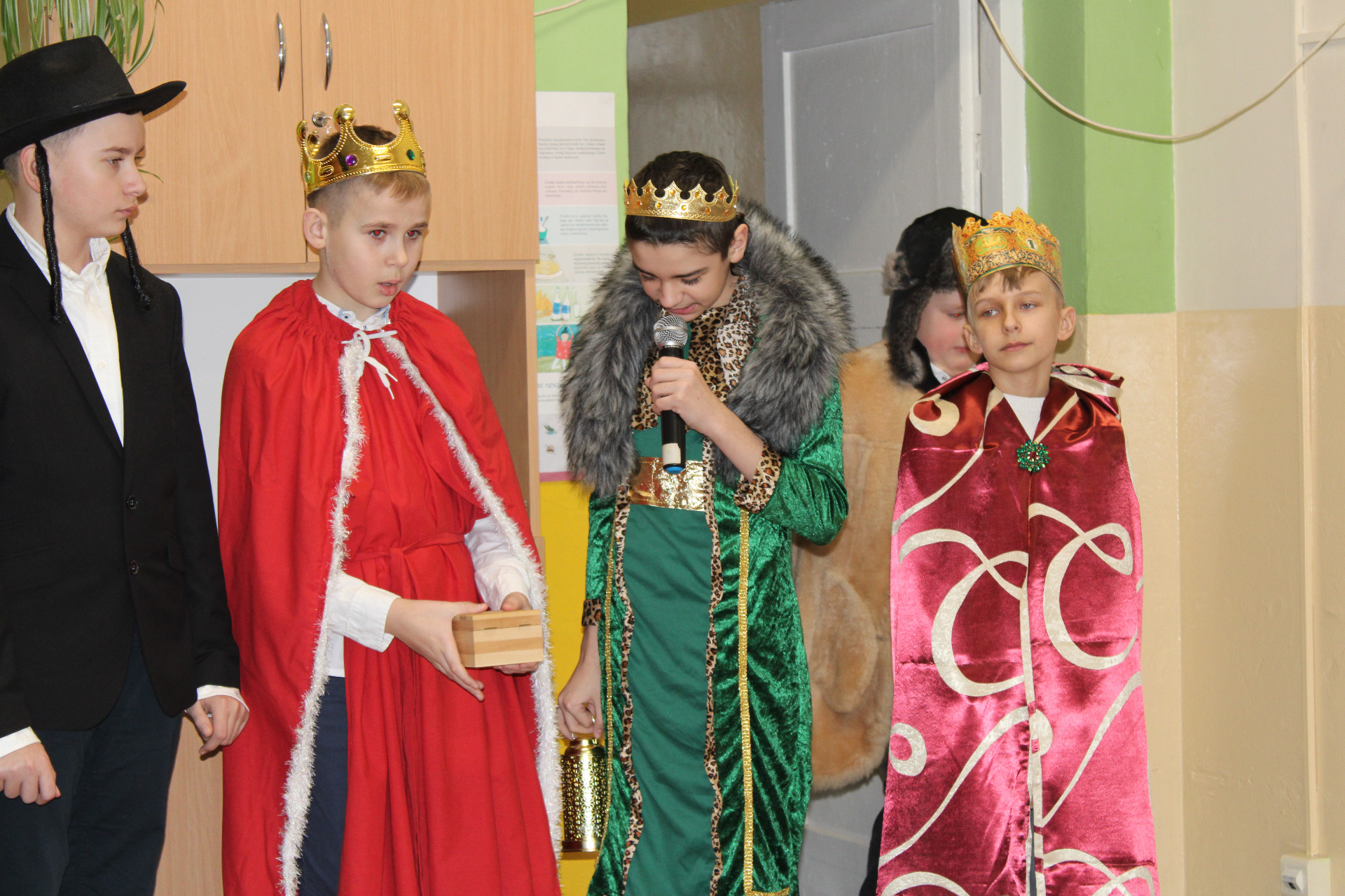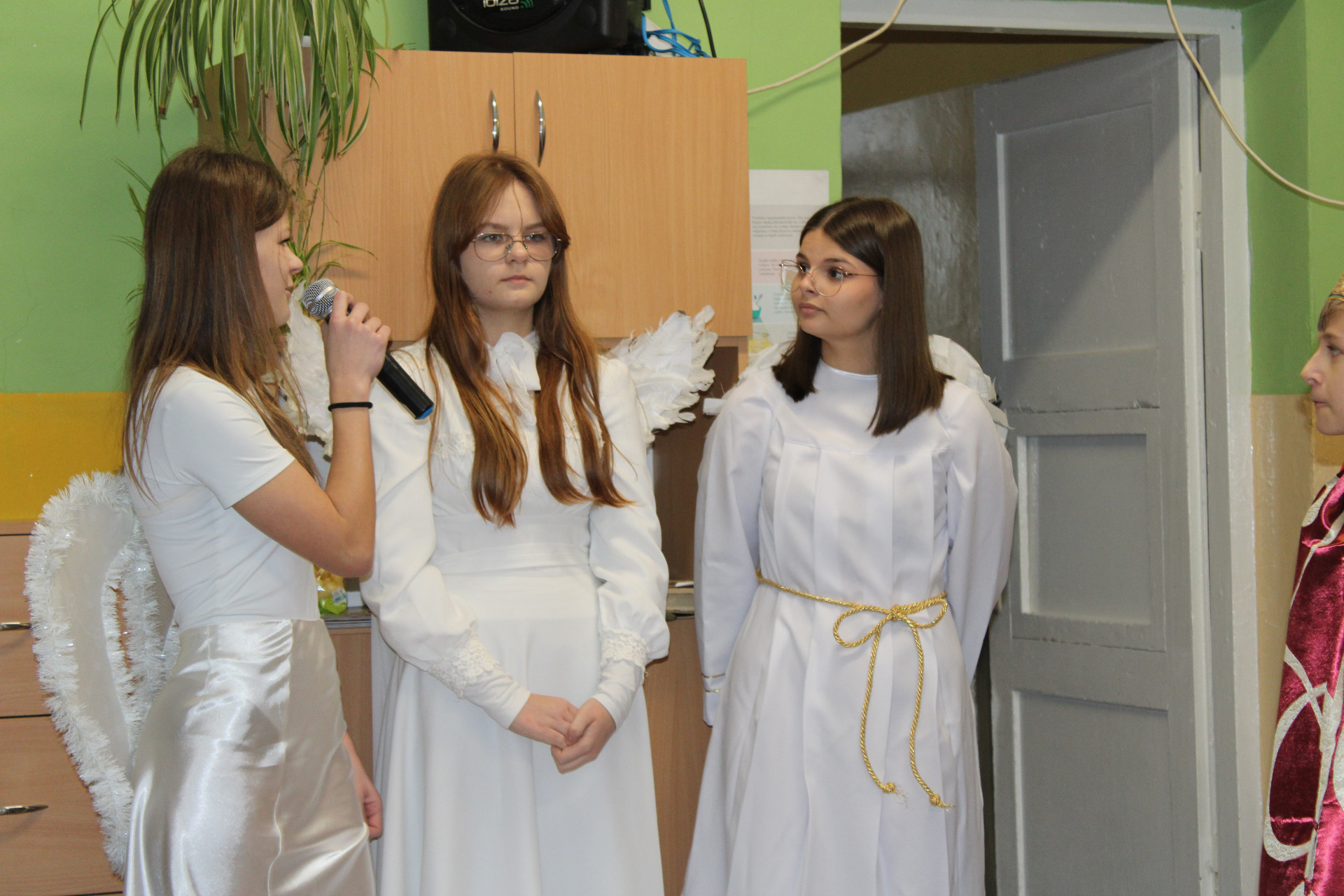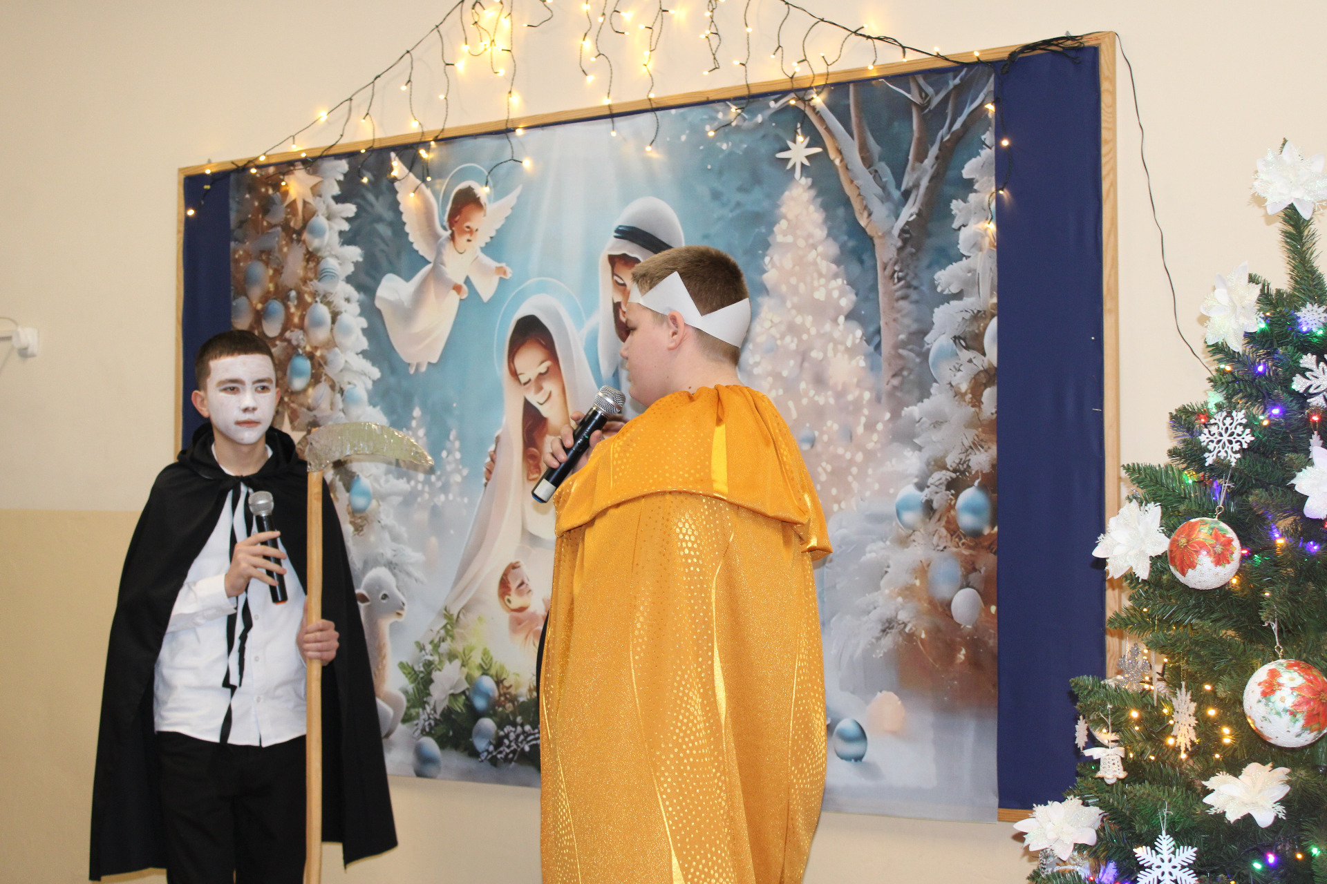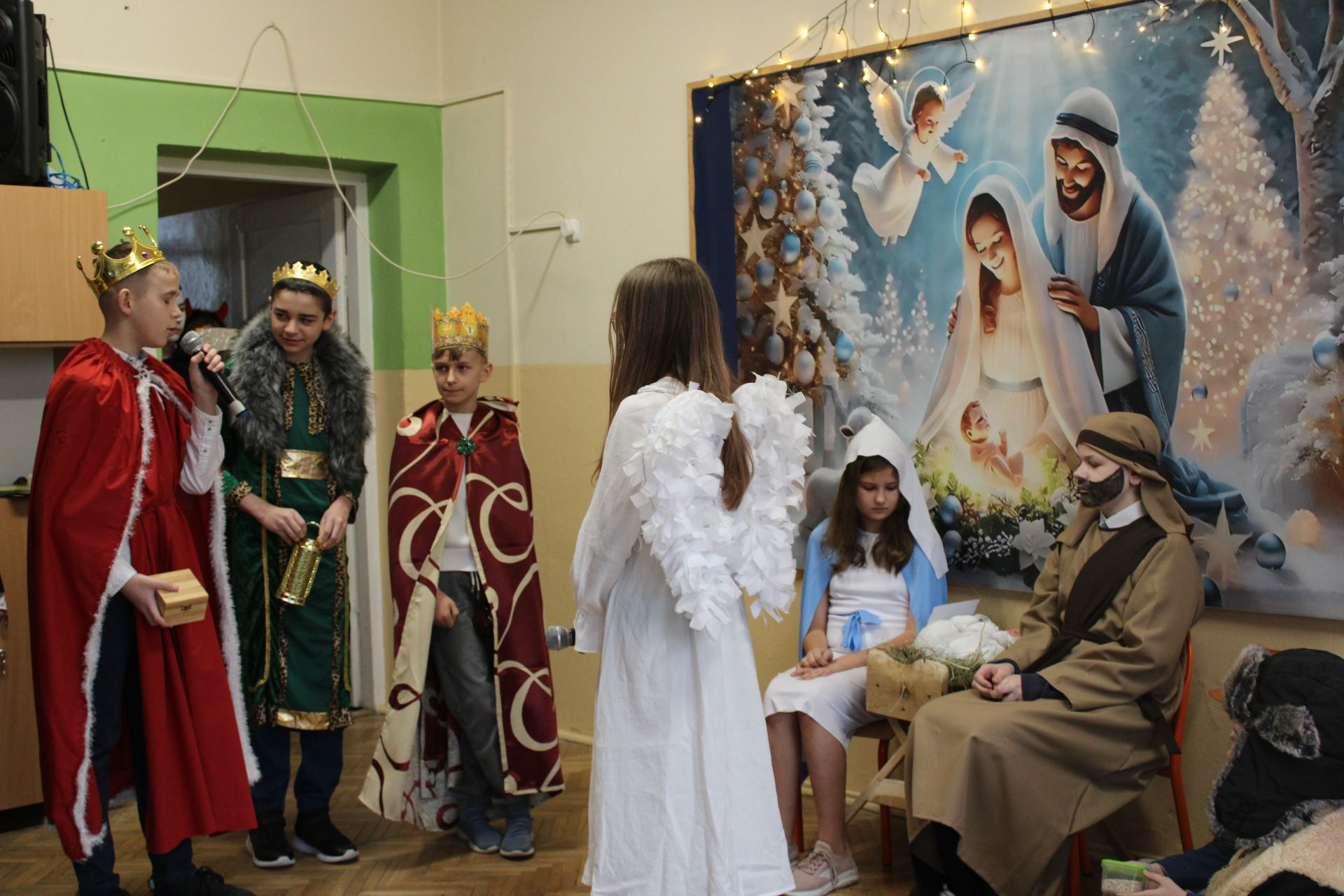 19 grudnia odbyła się szkolna wigilia. Głównym punktem programu były jasełka w wykonaniu uczniów klas IV–VIII, przygotowane pod kierunkiem pani Marty. Była to uwspółcześniona wersja historii narodzin Jezusa w Betlejem. Przedstawienie było pełne humoru, zwrotów akcji i niosło ważne przesłanie, że dobro zawsze zwycięża, a my powinniśmy postępować tak, aby trafić do nieba. Wielkie brawa należą się naszym aktorom, którzy zagrali brawurowo, a ich stroje pięknie dopełniły całość.
